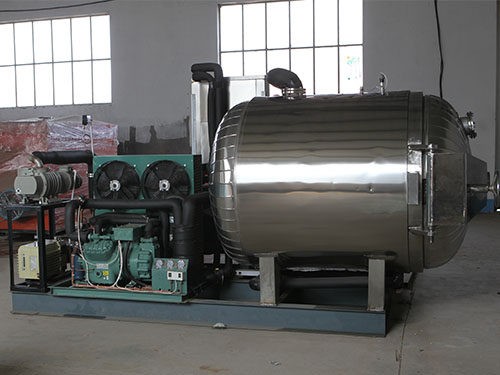 The vacuum freeze drying machine is an advanced method for the material for the material de-watering. It freezes the moisture material in the low temperature and makes the water inside sublimate directly in the vacuum condition. Then it collects the sublimated vapor by means of the condensing way so as to dewater and dry the material. Being processed by the vacuum freeze drying, the physical, chemical and biological states of the material are basically unchanged. The volatile and nutritious contents in the material, which are easy to be denatured in a warm condition, will be lost a little. When the material is freezing dried, it will be formed into a porous one and its volume be basically the same to that before drying. Therefore, the processed material can be recovered quickly if being watered again, because of its large contacting area and it can be stored for a long period in a sealed vessel.